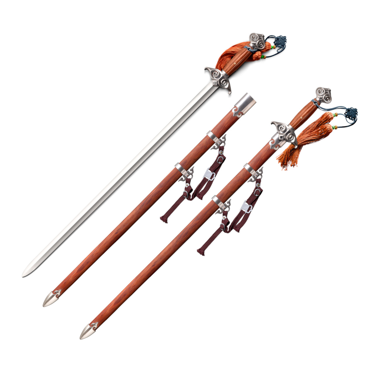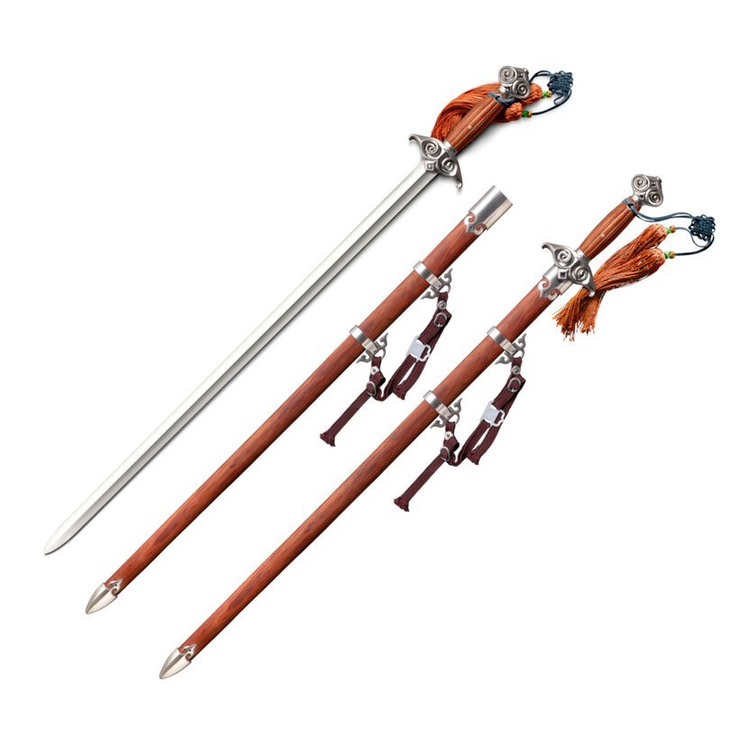Rukojeť tohoto meče je vyrobena z dřeva, které je tradičním materiálem pro čínské zbraně. Dřevěná rukojeť nejenže poskytuje pohodlný a pevný úchop, ale také přispívá k autentickému vzhledu zbraně. Chinese Leaf Gim je vybaven i kovovou záštitou, která chrání ruku a zajišťuje lepší kontrolu při použití.