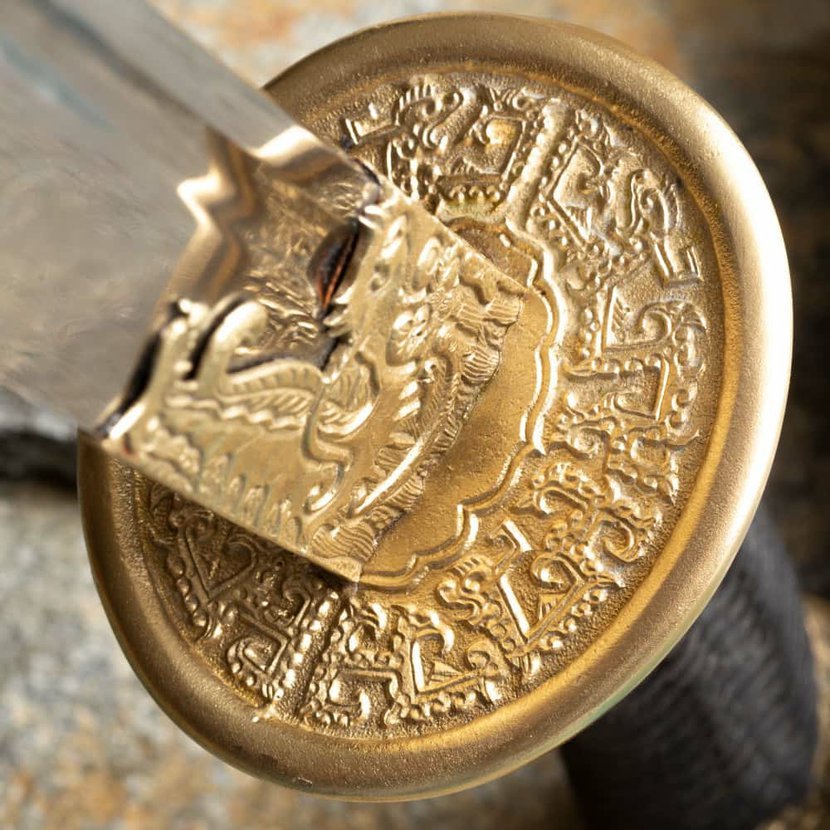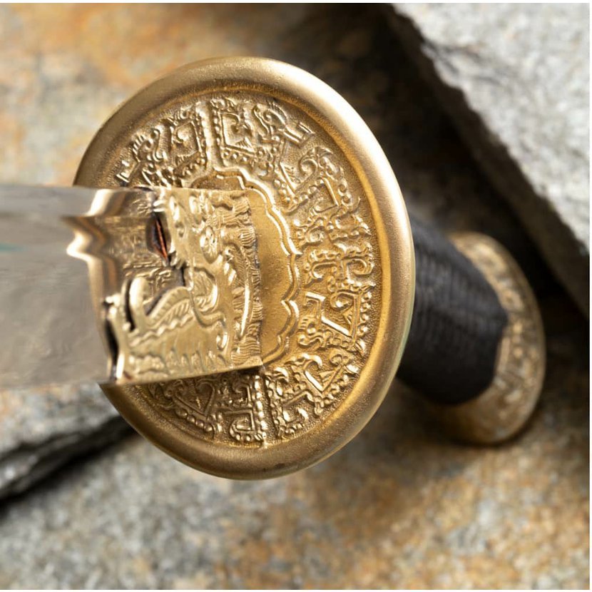 Cold Steel odborně zreprodukoval tuto ikonickou zbraň s použitím 1055 uhlíkové oceli, materiálu známého svou vynikající rovnováhou mezi pevností, odolností a ostrostí. Tvar čepele je pečlivě navržen tak, aby zvýšil její řeznou sílu, přičemž zakřivení čepeli umožňuje efektivnější sekání. Rukojeť je navržena pro pohodlný a bezpečný úchop, přičemž zahrnuje tradiční detaily, které odrážejí bohaté dědictví, ale zároveň zajišťují praktické použití.