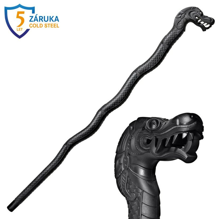 Cold Steel Dragon Walking Stick je výrazný a funkční kus, navržený s ohledem na styl i praktičnost. Vyrobený z odolného polypropylenu, má unikátně tvarovanou rukojeť ve tvaru dračí hlavy, která zajišťuje pohodlný a pevný úchop. Hůl o dvoudílné konstrukci je lehká, ale pevná, což ji činí ideální pro chůzi i sebeobranu. S impozantním designem a solidním provedením je skvělá nejen pro každodenní použití, ale také jako stylový doplněk.
