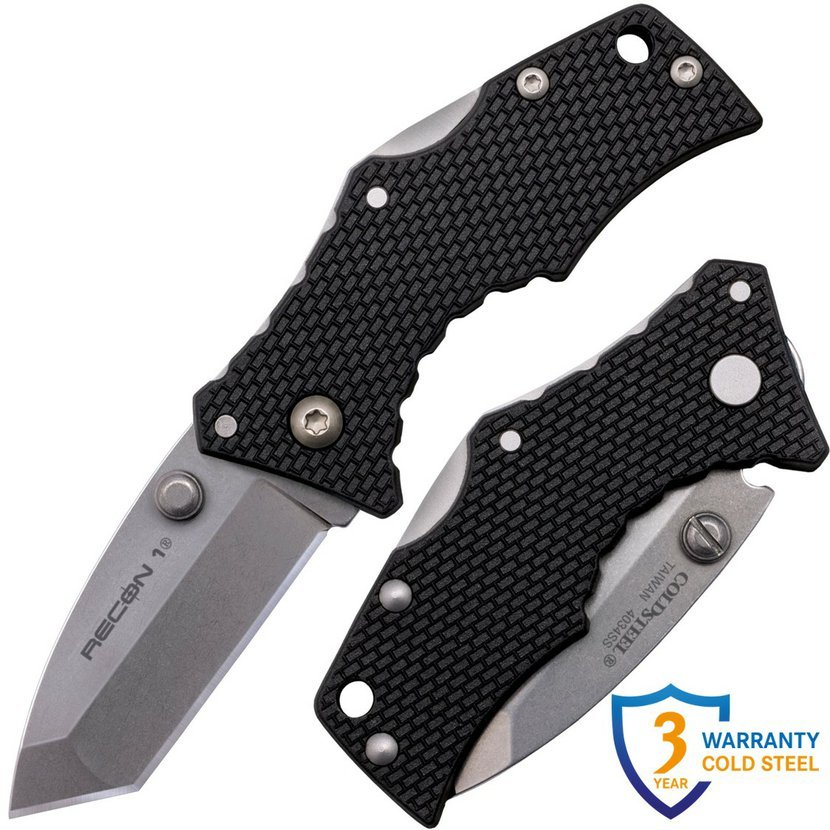 Micro Recon 1 je velmi malý a velmi lehký zavírací nůž, ideální pro každodenní nošení, popř. skryté nošení. Nůž je k dispozici ve dvou variantách čepele: Spear a Tanto Point. Čepel je vyrobena z oceli 4034SS s povrchovou úpravou Stone Wash. Velmi štíhlá rukojeť Griv-Ex je vyrobena z USA G-10. Protiskluzová textura umožňuje jednodušší úchop a používání. I tato řada nožů je vybavena unikátním patentem Cold Steel® Tri-Ad Lock™. Pojistka zabraňuje samočinnému nebo nechtěnému zavření nože i po přirozeném opotřebení v průběhu času. Nůž se stane Vaším každodenním parťákem.
