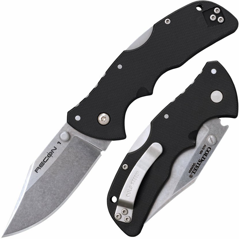 Recon 1 je jedním z nejpopulárnějších taktických zavíracích nožů z produkce Cold Steel. Proto jsem se rozhodli vrátit do prodeje menší sérii Mini Reconů, které jsou nyní i za velmi přijatelnou cenu. Jedná se o klasické EDC, nůž pro každodenní nošení, který díky své velikosti i váze nebude zbytečně budit negativní pozornost okolí. 3 mm tlustá čepel je vyrobena z oceli AUS 10A. Tato martenzitická, nerezová ocel má velmi dobré pevnostní vlastnosti a je vedena především jako materiál na řezné nástroje. Oproti AUS 8A lépe drží ostří a je odolnější proti otěru. Ocel byla následně tepelně zpracována pro dokonalou rovnováhu mezi držením ostří a snadným opětovným broušením. Povrchová úprava Stonewashing zabraňuje snadnému poškrábání a činí nůž odolnějčím proti korozi.