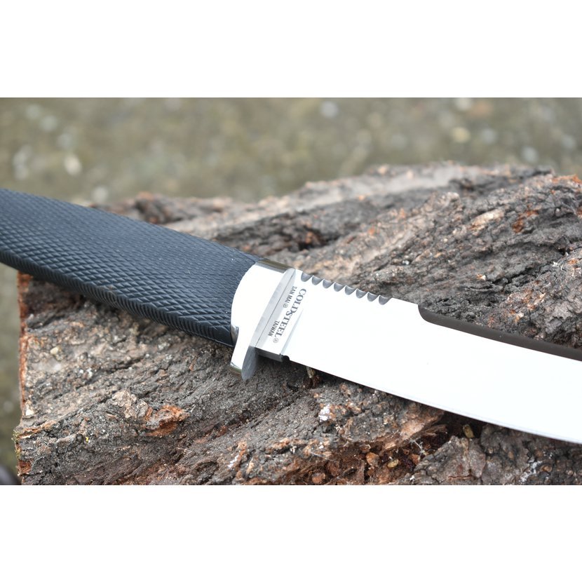 Naše čepele, vyrobené technologií San Mai III byly po desetiletí doménou Cold Steelu. San Mai III technologie vychází z praktik výrobců japonských mečů. Jde o sendvičovou skladbu čepele z vrstev o rozdílné tvrdosti. Zatím co střední vrstvu tvoří tvrdá ocel s vysokým obsahem uhlíku, dvě vrchní vrstvy jsou vyrobeny z oceli podstatně houževnatější, aby bránily střední vrstvě v popraskání. Čepel se tak stává maximálně odolná proti ztrátě ostří bez nebezpečí zlomení. Ale tyto luxusní čepele jsou vyráběny pouze v omezeném počtu. Ocel VG-10, která je použita na výrobu této čepele, je nerezová ocel s vysokým obsahem uhlíku. Perfektně tvarovaná rukojeť nože z materiálu Kraton (Long Kray-Ex™) nabízí neklouzavý povrch. Výborně padne do ruky a umožňuje i velmi jemnou práci s nožem v mokrém a blátivém prostředí. Nůž je dodáván včetně Secure-Ex® pouzdra.