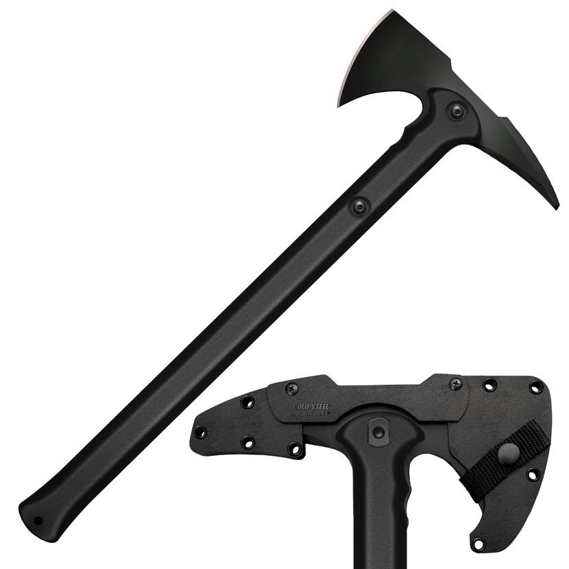 COLD STEEL War Hawk má ostrý hlavní břit i hrot ukovaný z jednoho kusu uhlíkové oceli 1055. Rukojeť je vyrobena z extrémně odolného plypropylenu. Jeho konstrukce, zpevněná hlavice a použitý materiál, War Hawk předurčuje k nešetrnému zacházení. Jako všechny tomahawky je i War Hawk vhodný jak pro boj z blízka, tak i k házení.