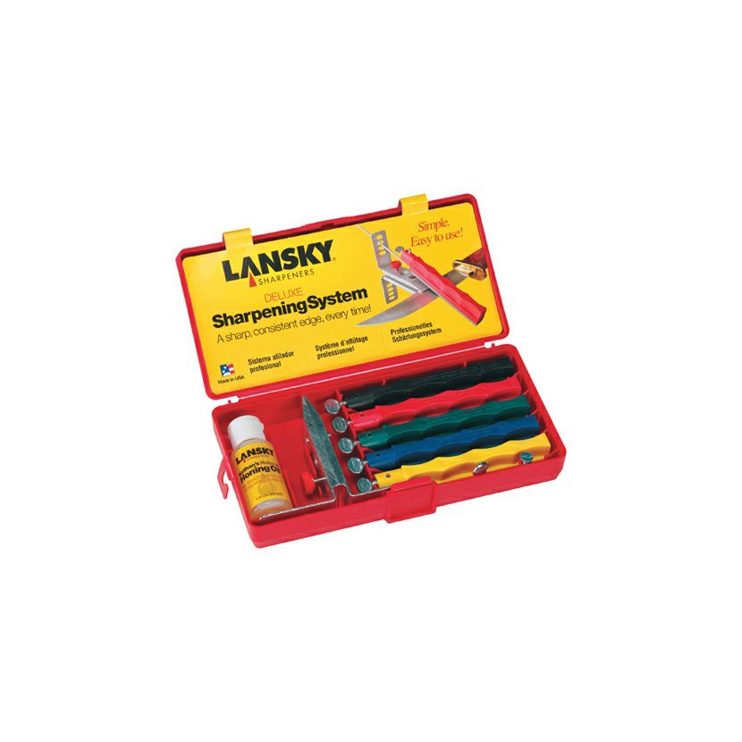 Uhlídat správný úhel ostří Vašeho nože, je na broušení to nejtěžší. K tomu byl vyvinut úhlový brusný systém Lansky. Sada Deluxe Controlled obsahuje pět plochých brusných kamenů, speciální brusný olej, více úhlovou svorku, sadu vodicích lišt a návod k použití v AJ. Sada je uložena v plastovém kufříku pro její snadnější přepravu.