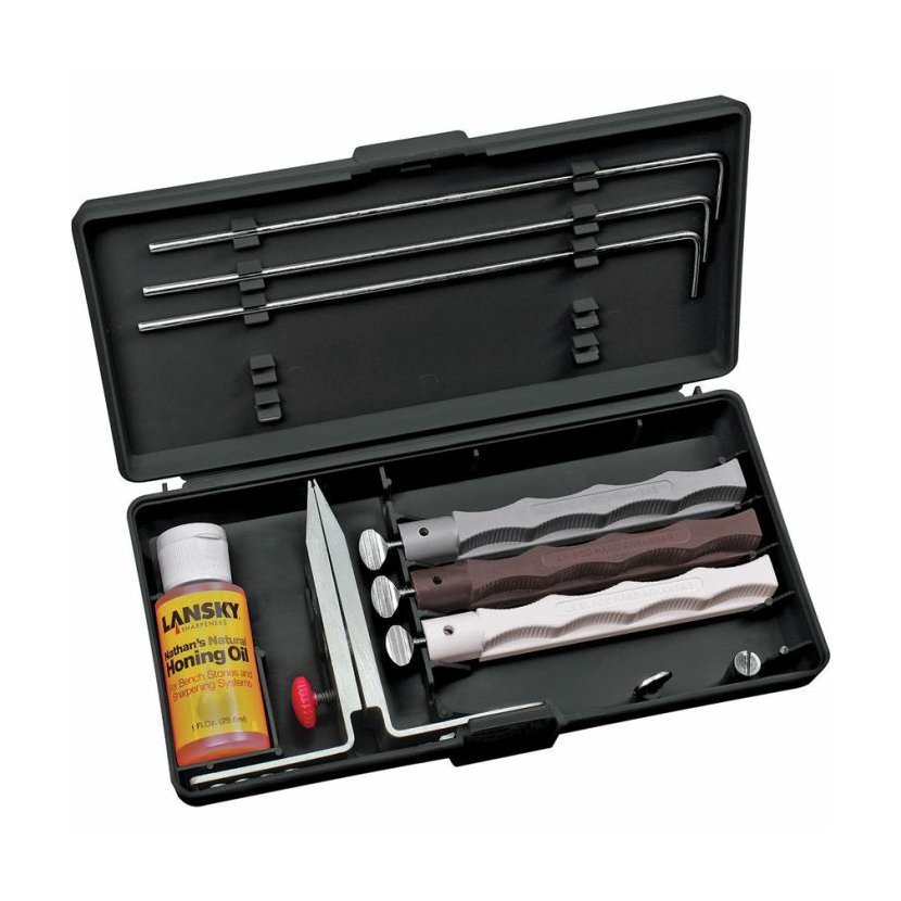 Lansky Natural Arkansas System 3ks je všestranná brusná sada obsahující tři přírodní arkansaské kameny různé zrnitosti (300, 650 a 1200) pro broušení, vyhlazování a leštění čepelí.