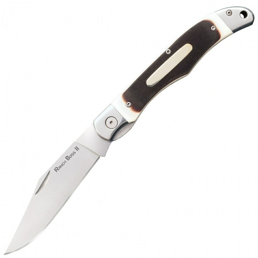 Ranch Boss II je klasickým zavíracím nožem pro každodenní použití. Nůž je navržen tak, abys se snadno používal i v znečištěném prostředí. Prodává se s koženým pouzdrem na opasek.