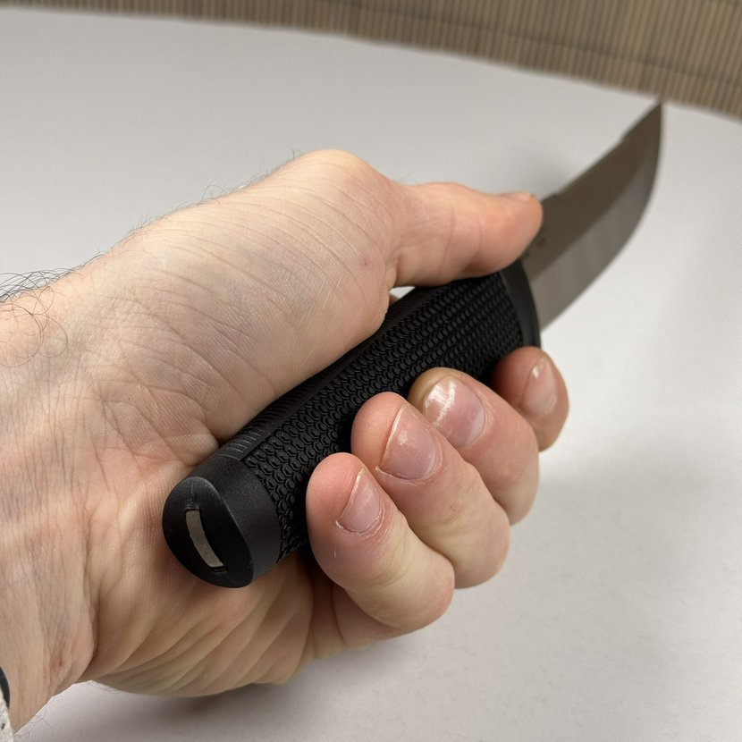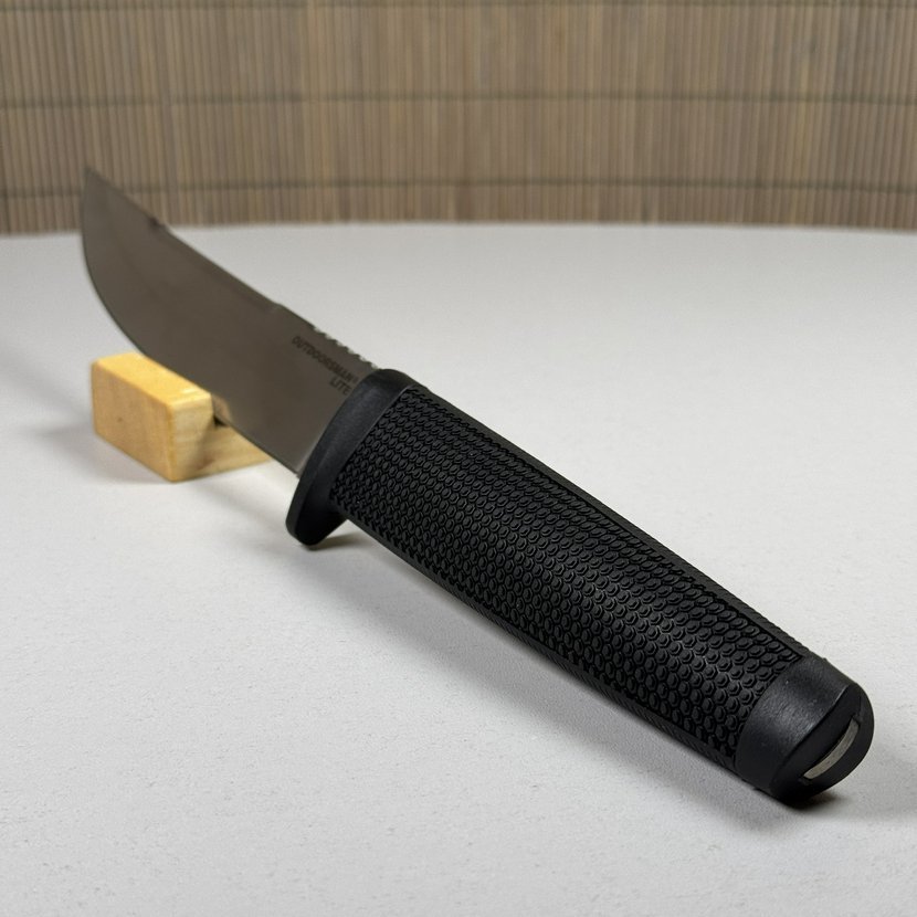 Outdoorsman Lite je pevný nůž s hladkým ostřím. Čepel je vyrobena z oceli German 4116 Stainless. Ta je především využívána v lékařském a farmakologickém průmyslu a při výrobě kuchyňských nástrojů. Outdoorsman Lite má rukojeť vyrobenou ze dvou materiálů. Podkladovou část rukojeti tvoří pevnostní polypropylen, který dodává noži tvar a výborné pevnostní vlastnosti a povrch je potažen měkkým a pružným umělým polymerem s označením Kray-Ex, aby rukojeť neklouzala. Čistit ji můžete jednoduše mýdlem a vodou. Nůž se dodává s pouzdrem Secure-Ex®. Tento konkrétní kus byl pouze rozbalený a vystavený v našem showroomu. Čepel, pouzdro ani rukojeť tedy nemají žádné známky použití. Chybí originální balení.