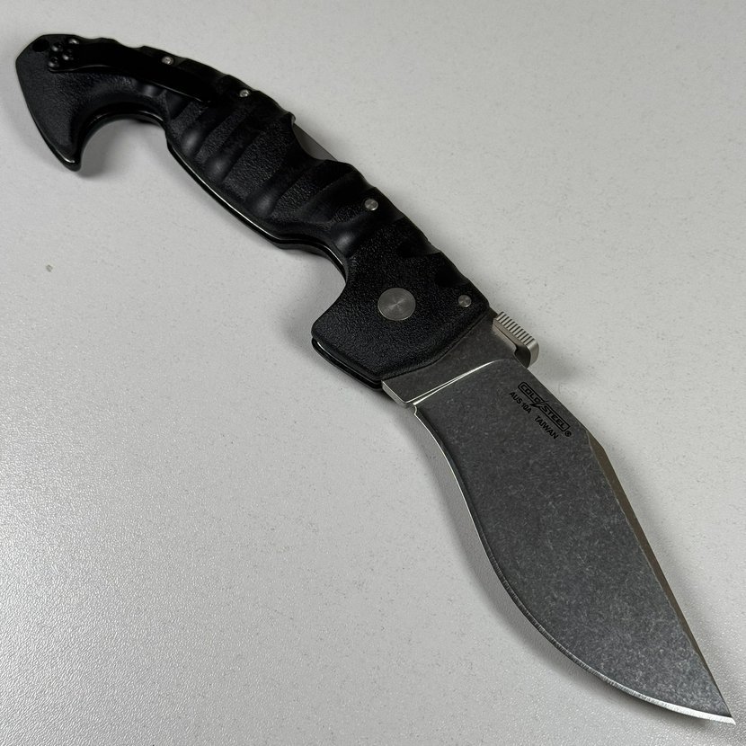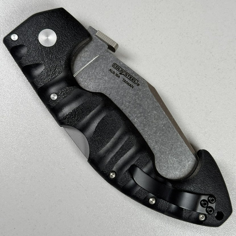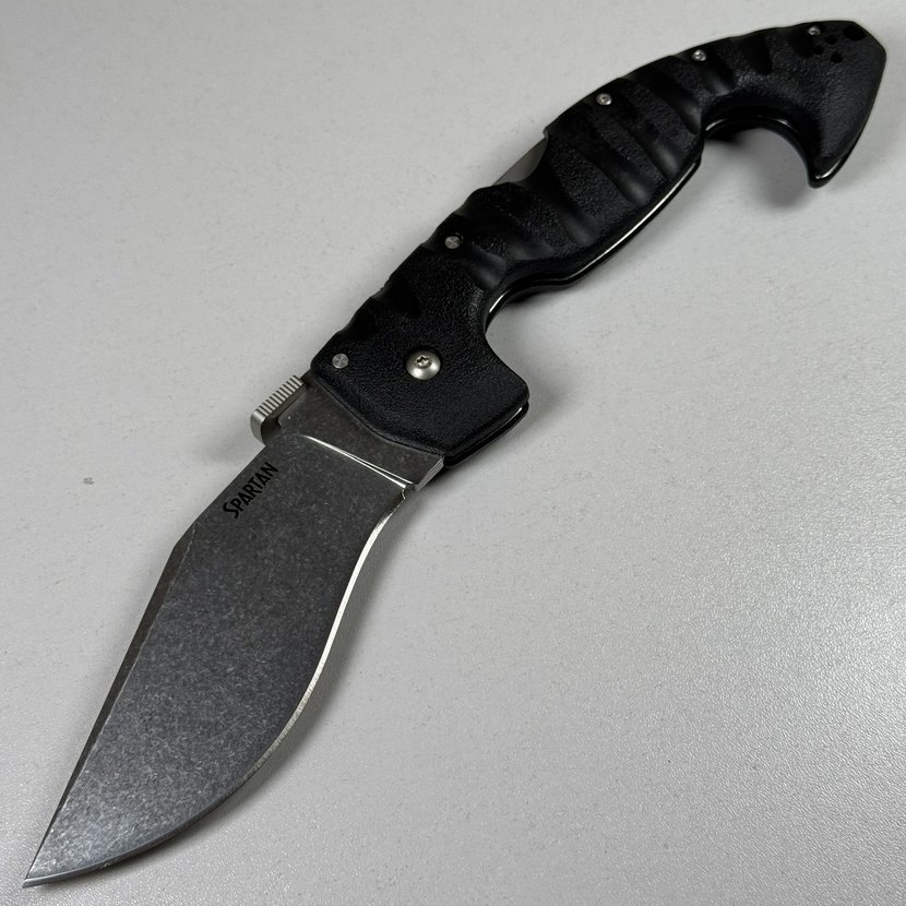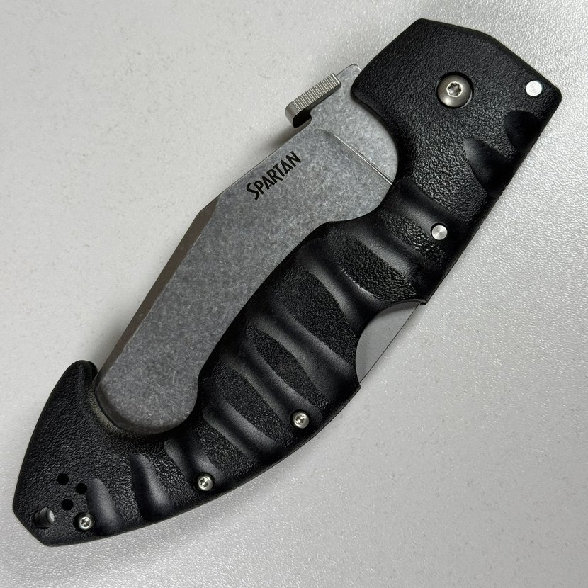 Super ostrá čepel Spartanu je vyrobena z velmi odolné japonské oceli AUS 10A. Tato martenzitická, nerezová ocel má velmi dobré pevnostní vlastnosti a je vedena především jako materiál na řezné nástroje. Oproti AUS 8A lépe drží ostří a je odolnější proti otěru. Ocel byla následně tepelně zpracována pro dokonalou rovnováhu mezi držením ostří a snadným opětovným broušením. Jeho výrazná rukojeť inspirovaná Kopisem je přesně otištěna do Griv-Exu s tepelně zpracovanými ocelovými vložkami. Pojistka proti nežádoucímu zavření nože Tri-Ad Lock patří v současné době mezi nejpevnější pojistky sériově vyráběné na světě. Nůž jsme pro Vás podrobili zátěžovému testu. Na výsledky testu se můžete podívat v sekci "Články". Nůž byl rozbalen a vystaven v našem showroomu. Čepel, ostří ani rukojeť nože nemají na sobě známky použití. K noži chybí originální balení.